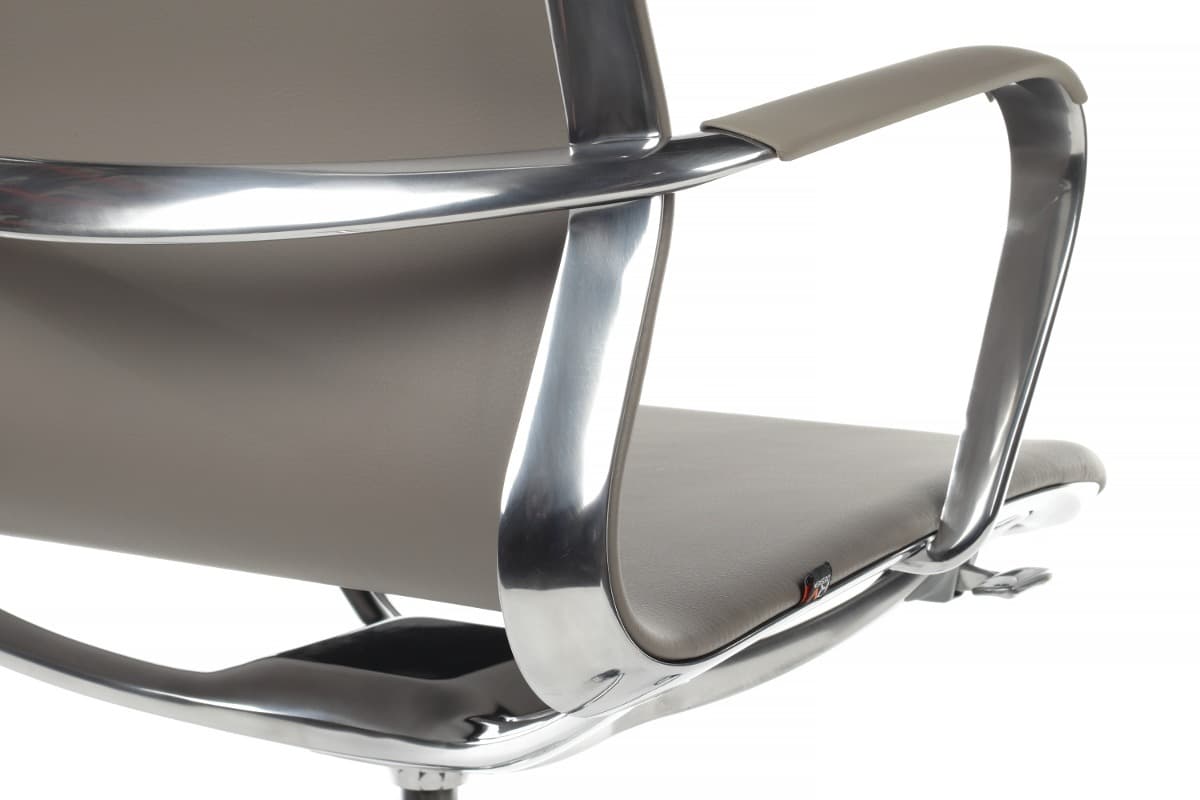 сочетание экокожи и полированного алюминия создаёт элегантный визуальный контраст;