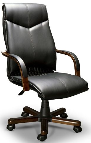Кожаное кресло для руководителя BARBARA в классическом дизайне с деревянными элементами (крестовина и подлокотники).