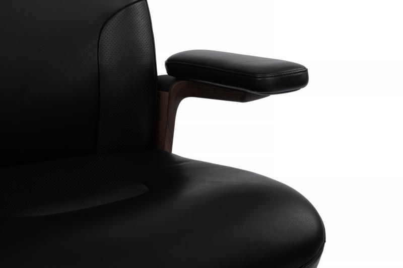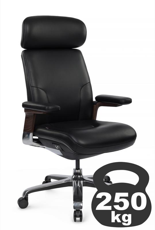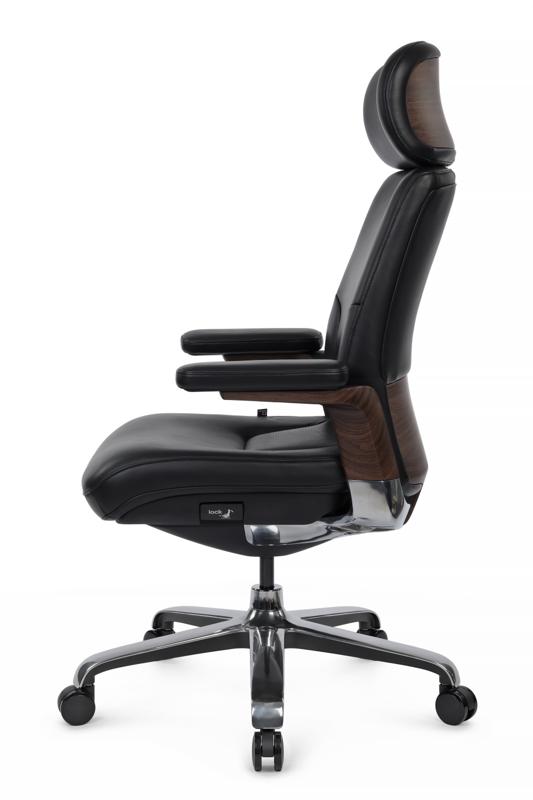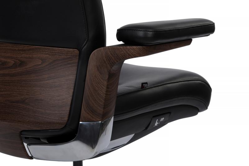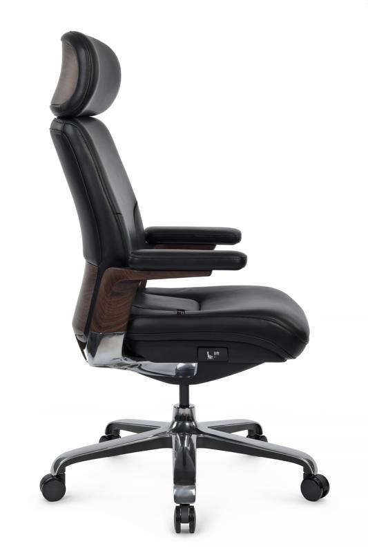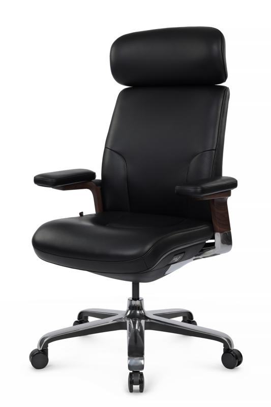 Эта модель задаёт новую планку в мире премиальной мебели: благородная натуральная кожа в сочетании с благородными деревянными вставками на подлокотниках создаёт выразительный деловой образ, где каждая деталь подчёркивает статус владельца.