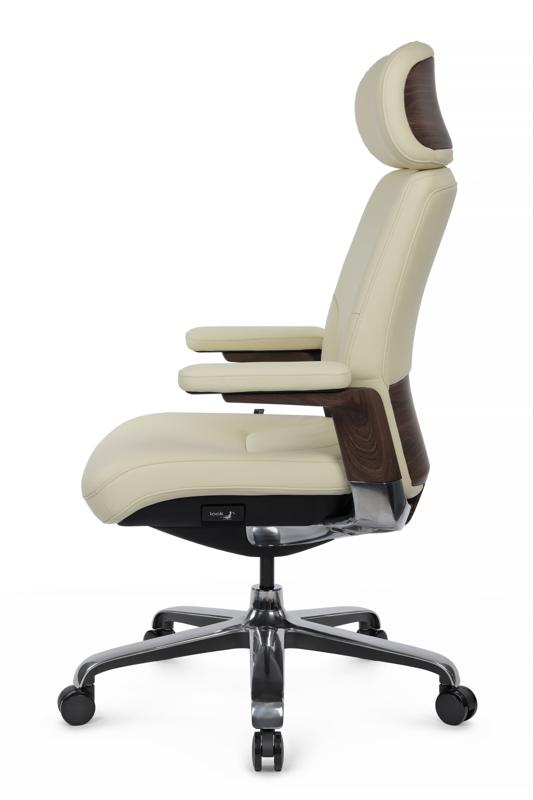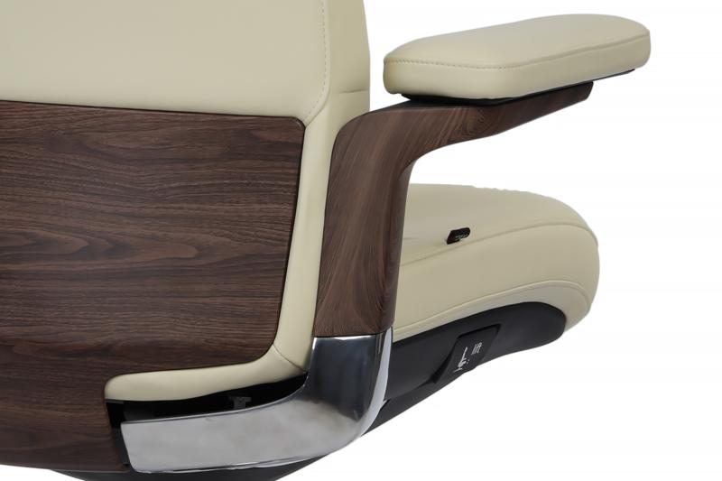 Эта модель задаёт новую планку в мире премиальной мебели: благородная натуральная кожа в сочетании с благородными деревянными вставками на подлокотниках создаёт выразительный деловой образ, где каждая деталь подчёркивает статус владельца.