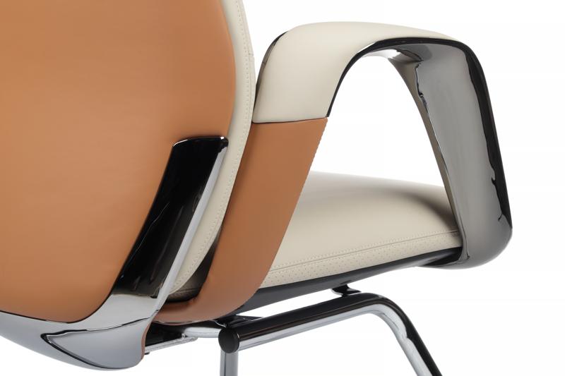 Стильный контраст материалов. Алюминиевые подлокотники с кожаными вставками создают современный визуальный ритм, придавая креслу лёгкость и динамичность.