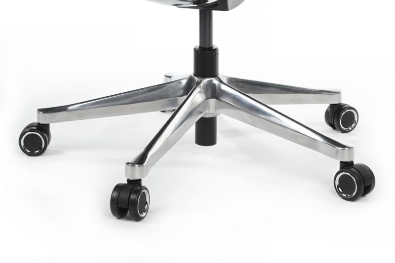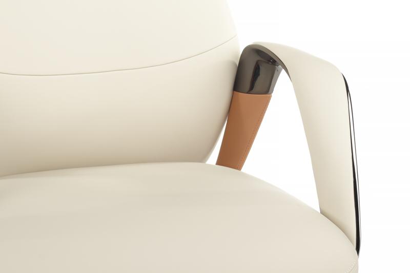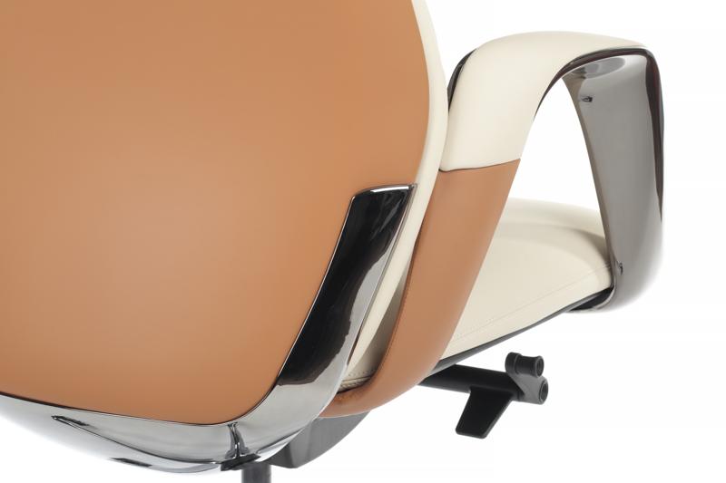 Стильный контраст материалов. Алюминиевые подлокотники с кожаными вставками создают современный визуальный ритм, придавая креслу лёгкость и динамичность.