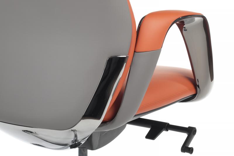 Стильный контраст материалов. Алюминиевые подлокотники с кожаными вставками создают современный визуальный ритм, придавая креслу лёгкость и динамичность.