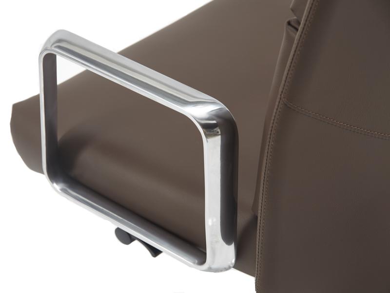 Эта модель переосмысливает классические каноны мебельного искусства: благородная натуральная кожа в сочетании с лаконичными алюминиевыми акцентами формирует образ, где каждая деталь работает на создание атмосферы сдержанной роскоши.