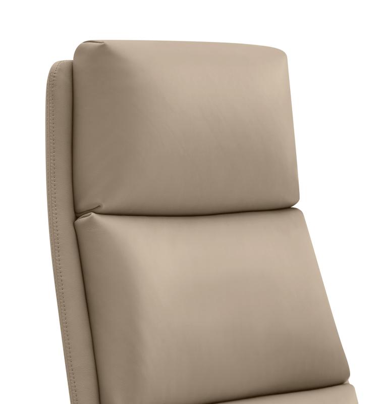 Эта модель переосмысливает классические каноны мебельного искусства: благородная натуральная кожа в сочетании с лаконичными алюминиевыми акцентами формирует образ, где каждая деталь работает на создание атмосферы сдержанной роскоши.