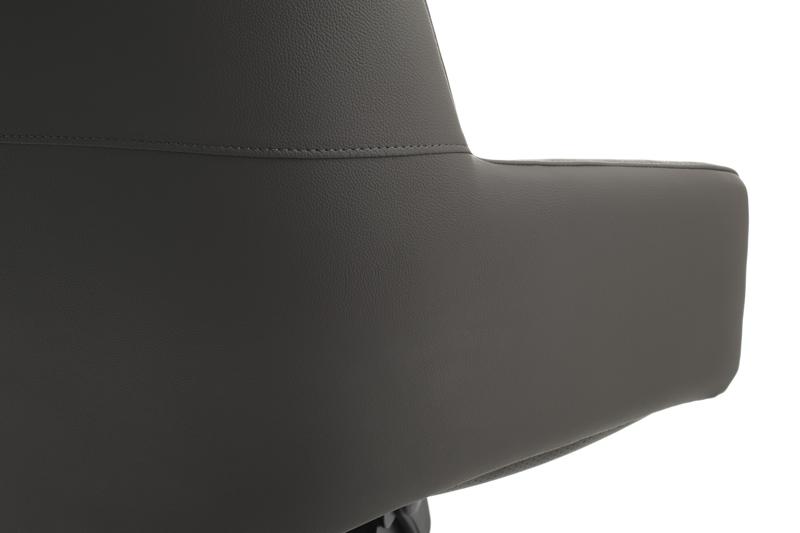 Подлокотники: металл с матовым покрытием и кожаными накладками.