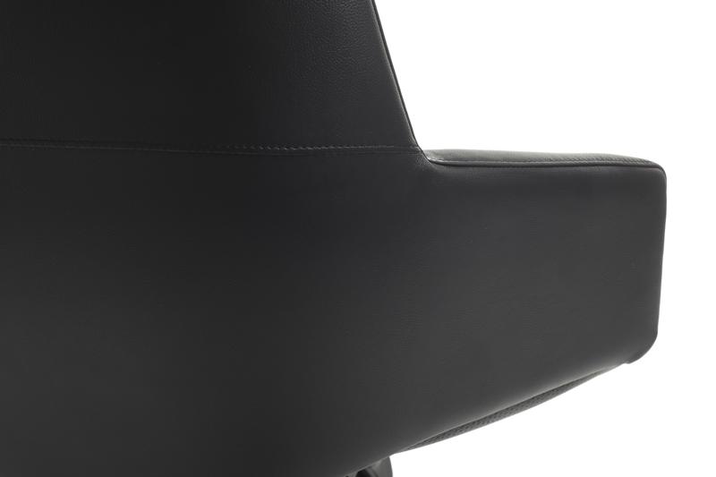 Подлокотники: металл с матовым покрытием и кожаными накладками.