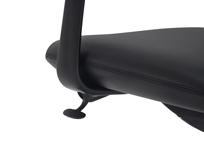 подлокотники из натуральной кожи и чёрного алюминия обеспечивают комфортную опору и визуально облегчают силуэт кресла;