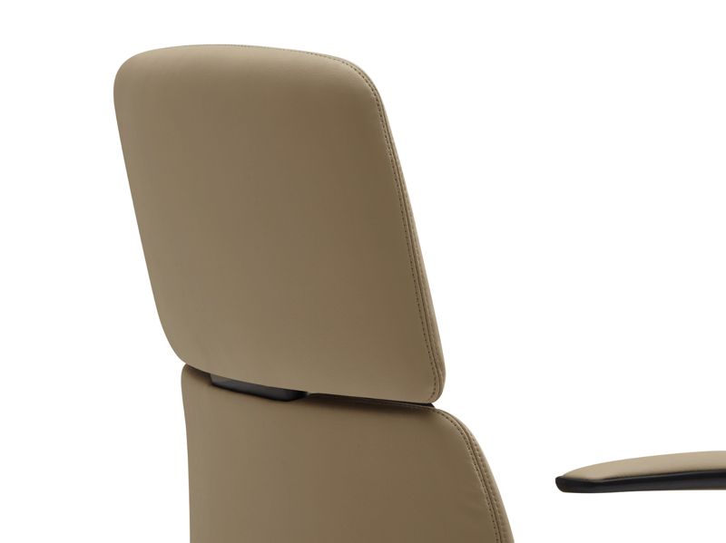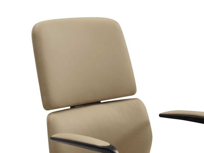 подлокотники из натуральной кожи и чёрного алюминия обеспечивают комфортную опору и визуально облегчают силуэт кресла;