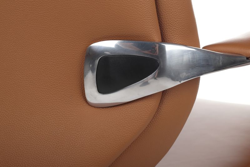 Комфорт в деталях. Подлокотники из полированного алюминия с кожаными накладками в тон обивки создают удобную опору для рук.