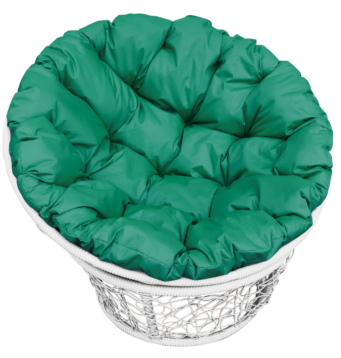 Кресло "Папасан" цвет: Белый; подушка: Зелёный Белый/Зеленый
