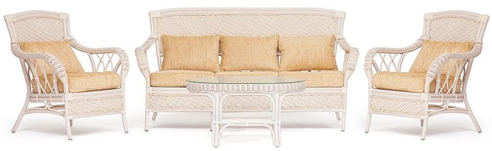 Комплект для отдыха "ANDREA" белый (диван + 2 кресла + журн. столик со стеклом + подушки) TetChair Белый