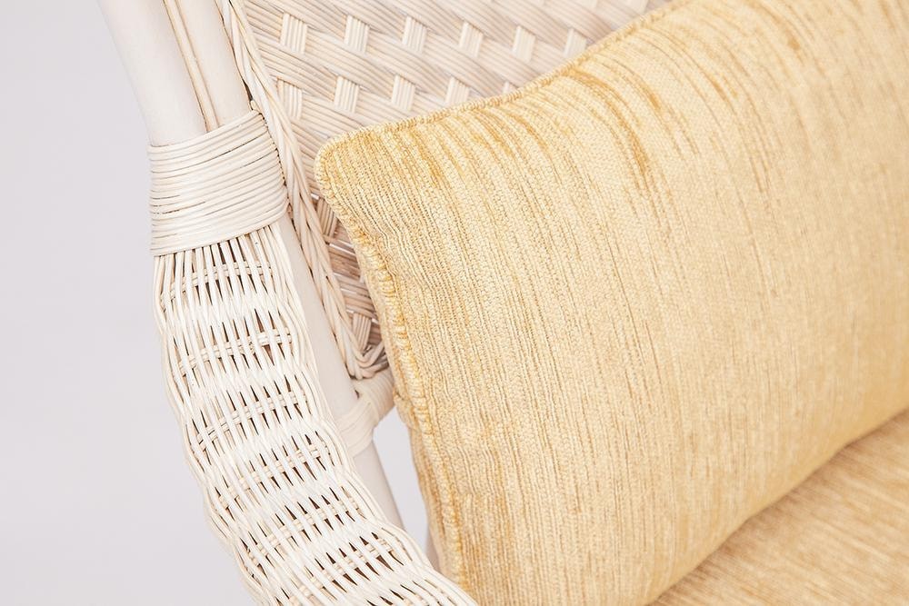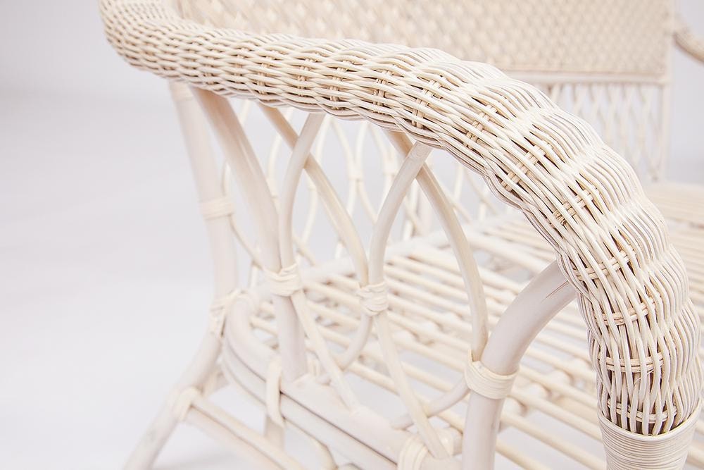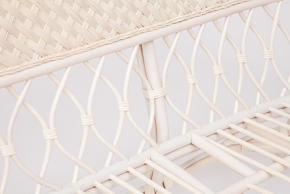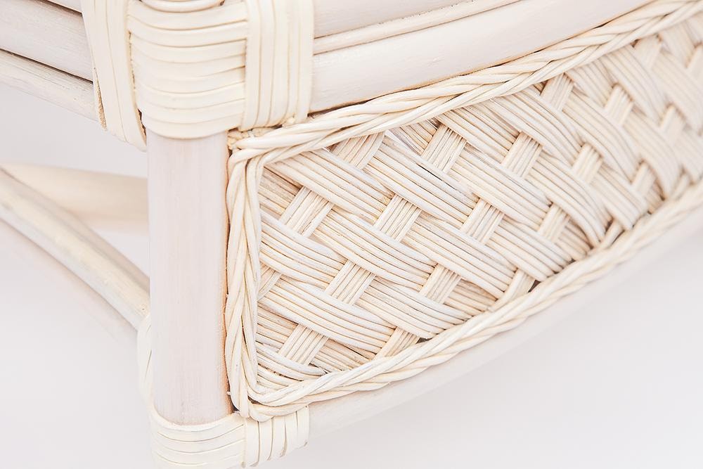 Материал: каркас - ротанг (высший сорт), мягкие элементы - ткань (хлопок+полиэстр) + наполнитель (холлофайбер), столешница - закалённое стекло. Размеры: диван - 172х80х95 см, кресло - 75х80х95 см, столик - 85х52х47 см