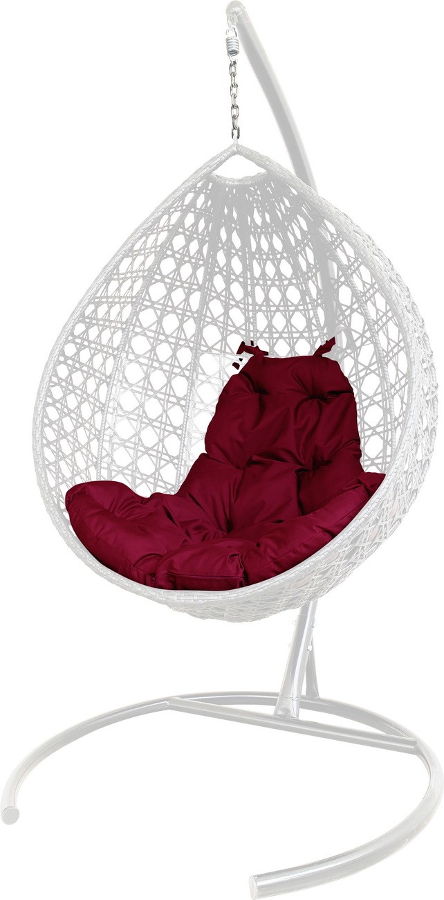 ПОДВЕСНОЕ КРЕСЛО КОКОН"КАПЛЯ"ЛЮКС РОТАНГ ЦВЕТ: БЕЛЫЙ; ПОДУШКА: БОРДОВЫЙ Белый/Бордо