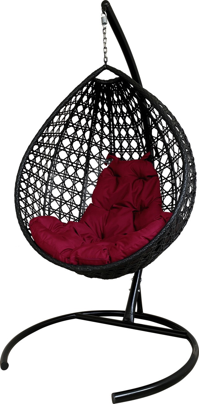ПОДВЕСНОЕ КРЕСЛО КОКОН"КАПЛЯ"ЛЮКС РОТАНГ ЦВЕТ: ЧЕРНЫЙ ; ПОДУШКА: БОРДОВЫЙ Черный/бордовый