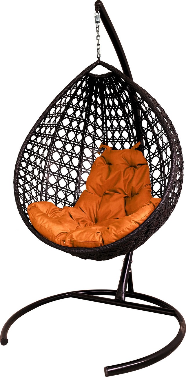 ПОДВЕСНОЕ КРЕСЛО КОКОН"КАПЛЯ"ЛЮКС РОТАНГ ЦВЕТ: КОРИЧНЕВЫЙ; ПОДУШКА: ОРАНЖЕВЫЙ Коричнево/Оранжевый
