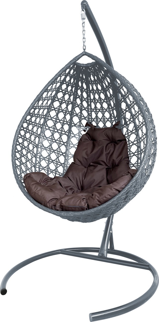 ПОДВЕСНОЕ КРЕСЛО КОКОН"КАПЛЯ"ЛЮКС РОТАНГ ЦВЕТ: СЕРЫЙ; ПОДУШКА: КОРИЧНЕВЫЙ серый/коричневый