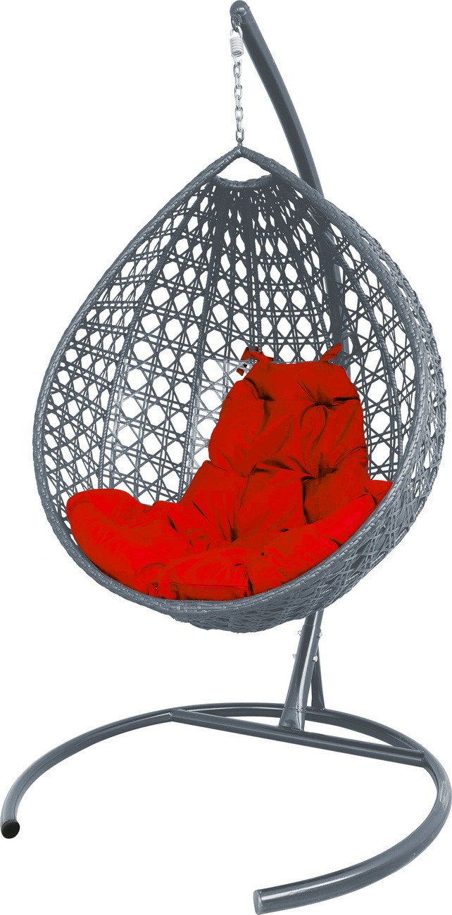 ПОДВЕСНОЕ КРЕСЛО КОКОН"КАПЛЯ"ЛЮКС РОТАНГ ЦВЕТ: СЕРЫЙ; ПОДУШКА: КРАСНЫЙ серый/красный