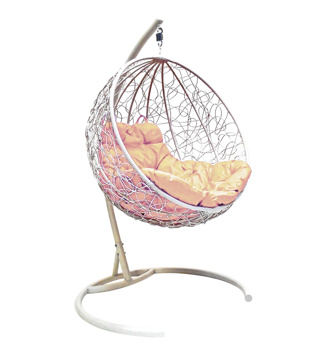 ПОДВЕСНОЕ КРЕСЛО КОКОН"КРУГЛЫЙ" РОТАНГ ЦВЕТ: БЕЛЫЙ ; ПОДУШКА: БЕЖЕВЫЙ Белый/Бежевый