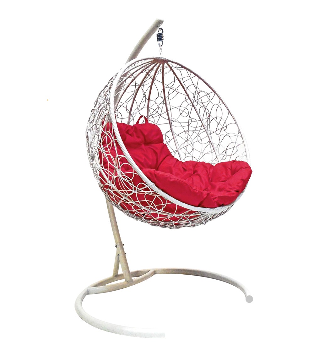 ПОДВЕСНОЕ КРЕСЛО КОКОН"КРУГЛЫЙ" РОТАНГ ЦВЕТ: БЕЛЫЙ ; ПОДУШКА: КРАСНЫЙ белый/красный
