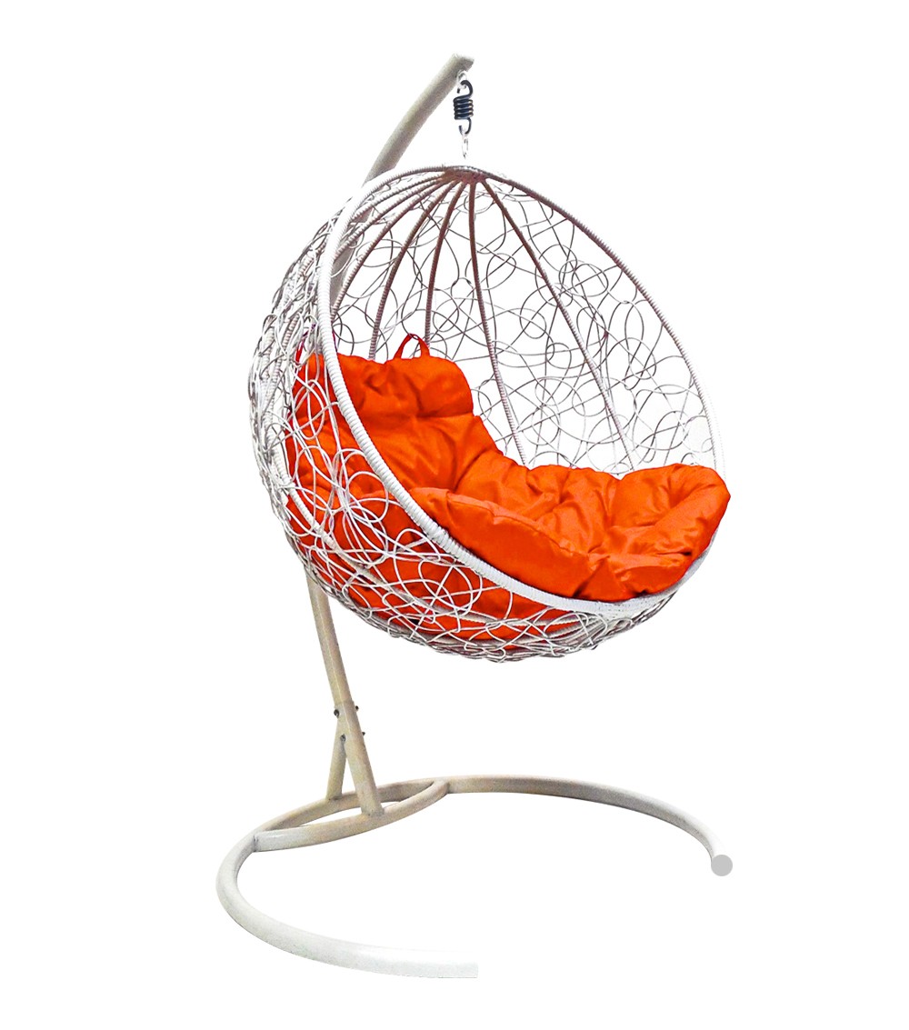 ПОДВЕСНОЕ КРЕСЛО КОКОН"КРУГЛЫЙ" РОТАНГ ЦВЕТ: БЕЛЫЙ ; ПОДУШКА: ОРАНЖЕВЫЙ Белый/Оранжевый
