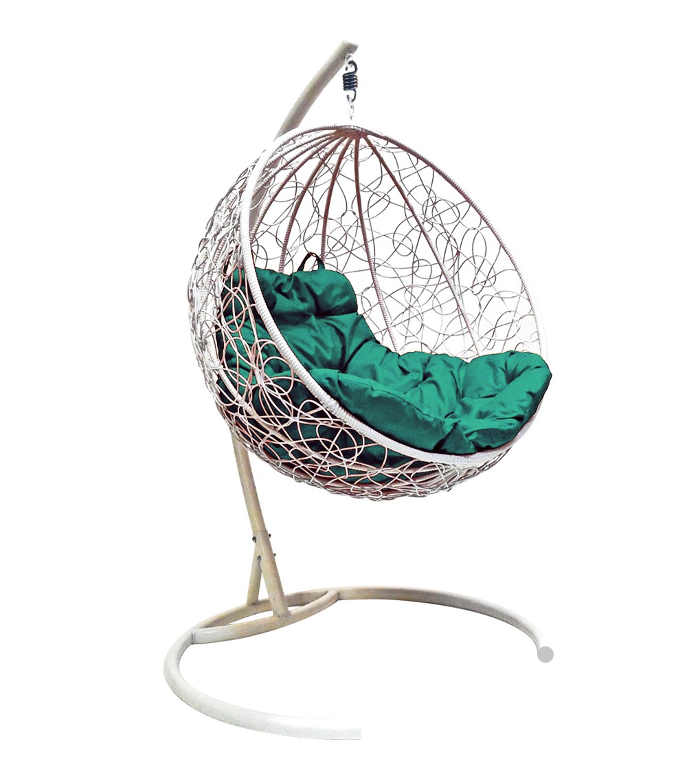 ПОДВЕСНОЕ КРЕСЛО КОКОН"КРУГЛЫЙ" РОТАНГ ЦВЕТ: БЕЛЫЙ ; ПОДУШКА: ЗЕЛЕНЫЙ Белый/Зеленый
