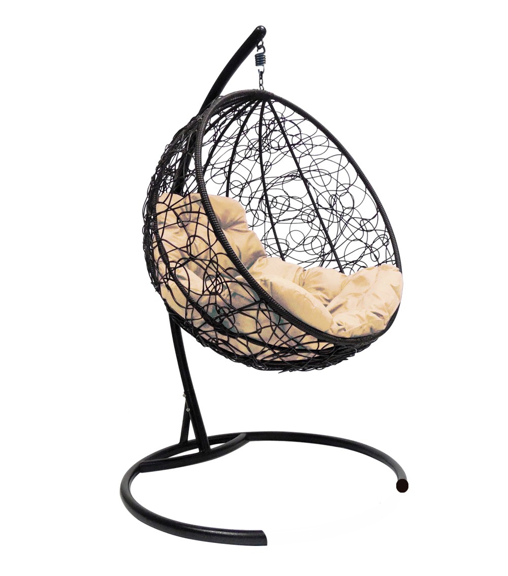 ПОДВЕСНОЕ КРЕСЛО КОКОН"КРУГЛЫЙ" РОТАНГ ЦВЕТ: ЧЕРНЫЙ ; ПОДУШКА: БЕЖЕВЫЙ Черный/Бежевый