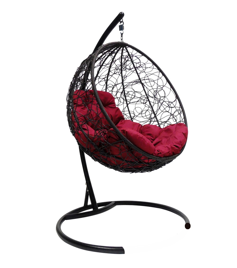 ПОДВЕСНОЕ КРЕСЛО КОКОН"КРУГЛЫЙ" РОТАНГ ЦВЕТ: ЧЕРНЫЙ ; ПОДУШКА: БОРДОВЫЙ Черный/бордовый