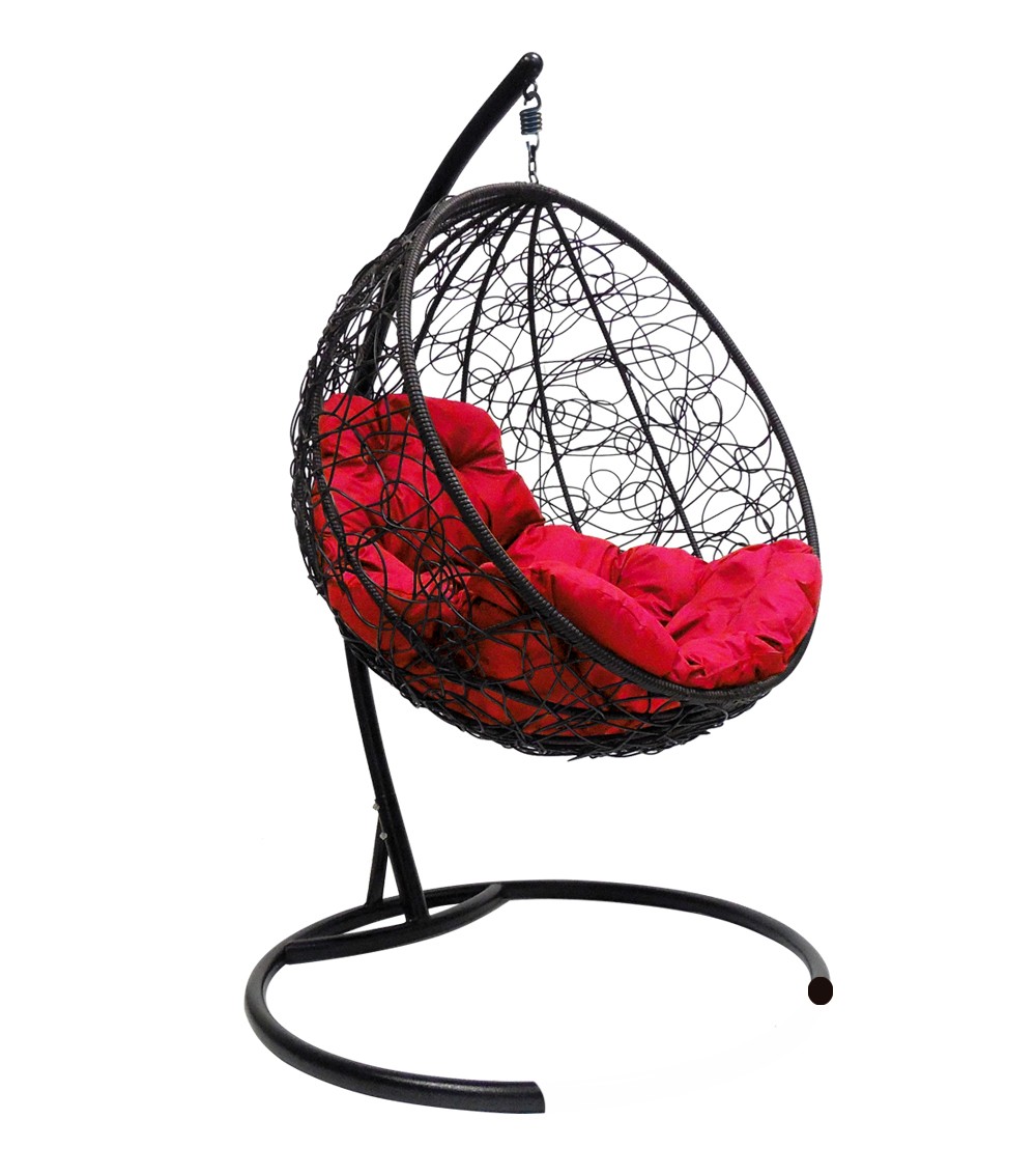 ПОДВЕСНОЕ КРЕСЛО КОКОН"КРУГЛЫЙ" РОТАНГ ЦВЕТ: ЧЕРНЫЙ ; ПОДУШКА: КРАСНЫЙ Чёрный/красный