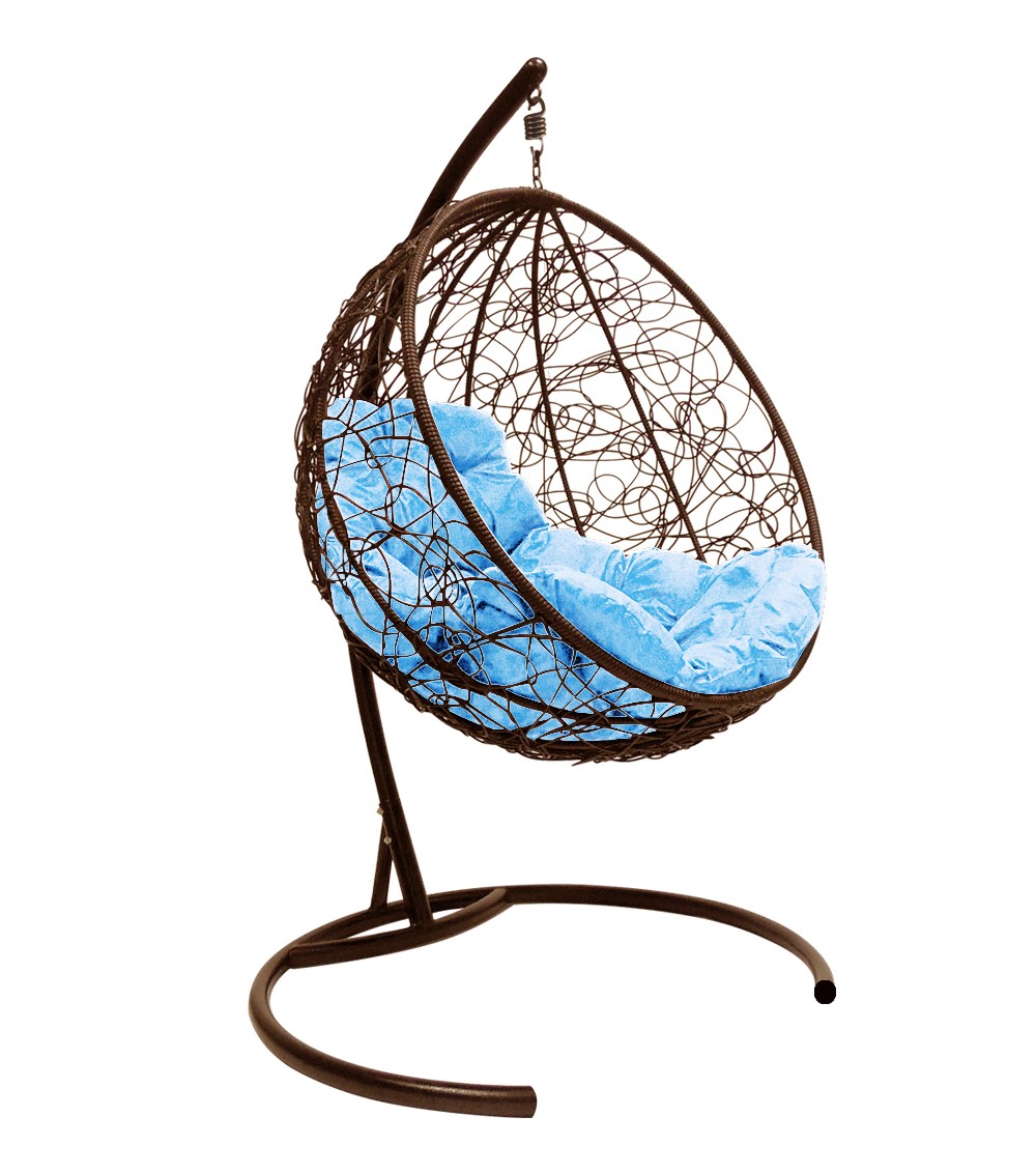 ПОДВЕСНОЕ КРЕСЛО КОКОН"КРУГЛЫЙ" РОТАНГ ЦВЕТ: КОРИЧНЕВЫЙ ; ПОДУШКА: ГОЛУБОЙ Коричневый/голубой