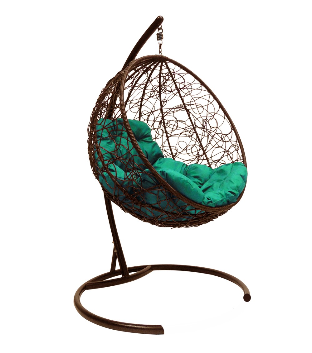ПОДВЕСНОЕ КРЕСЛО КОКОН"КРУГЛЫЙ" РОТАНГ ЦВЕТ: КОРИЧНЕВЫЙ ; ПОДУШКА: ЗЕЛЕНЫЙ Коричнево/Зеленый