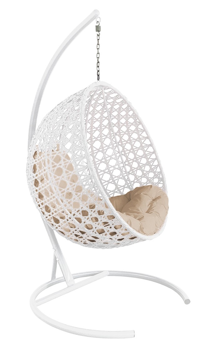 ПОДВЕСНОЕ КРЕСЛО КОКОН"КРУГЛЫЙ"ЛЮКС РОТАНГ ЦВЕТ: БЕЛЫЙ ; ПОДУШКА: БЕЖЕВЫЙ Белый/Бежевый