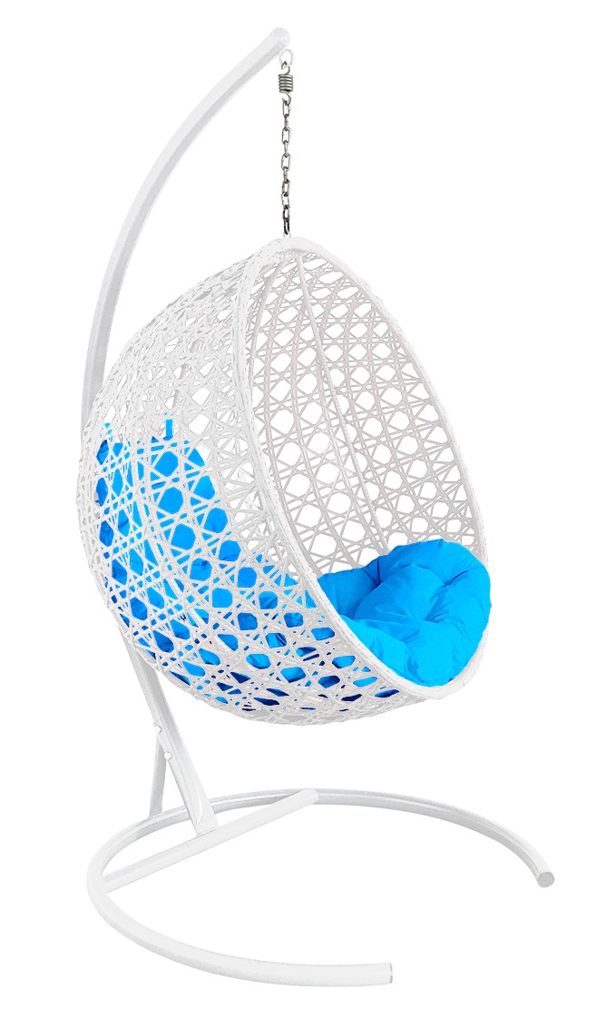 ПОДВЕСНОЕ КРЕСЛО КОКОН"КРУГЛЫЙ"ЛЮКС РОТАНГ ЦВЕТ: БЕЛЫЙ ; ПОДУШКА: ГОЛУБОЙ Белый/Голубой