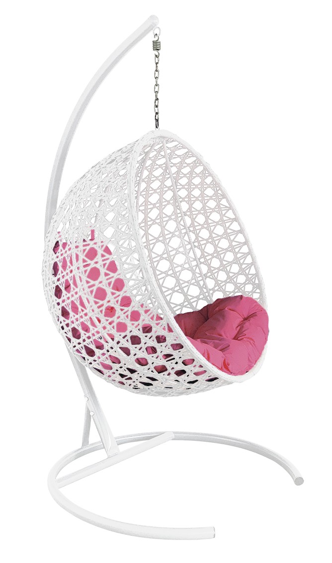 ПОДВЕСНОЕ КРЕСЛО КОКОН"КРУГЛЫЙ"ЛЮКС РОТАНГ ЦВЕТ: БЕЛЫЙ ; ПОДУШКА: РОЗОВЫЙ Белый/розовый