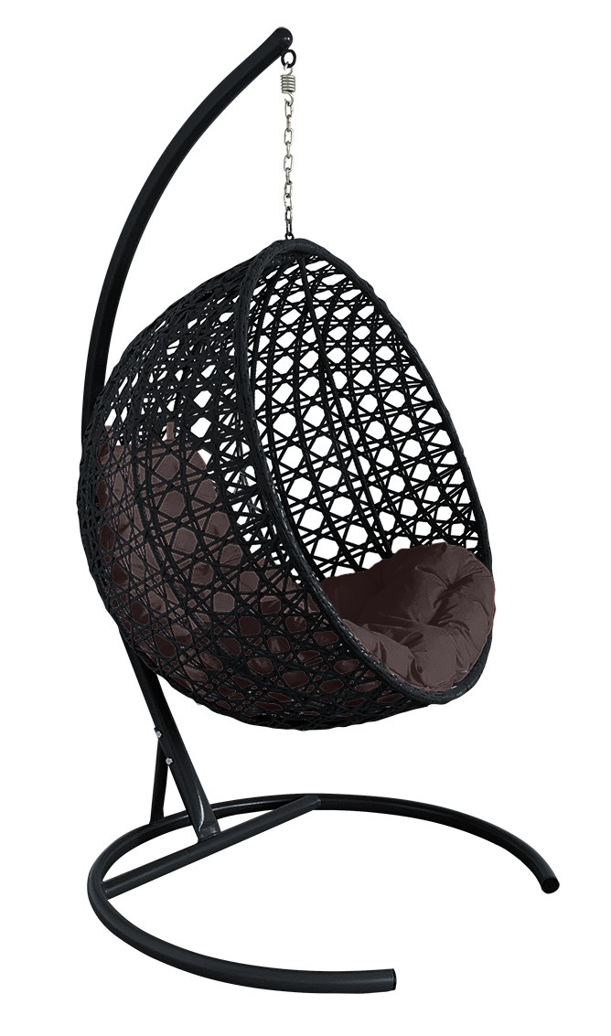 ПОДВЕСНОЕ КРЕСЛО КОКОН"КРУГЛЫЙ"ЛЮКС РОТАНГ ЦВЕТ: ЧЕРНЫЙ ; ПОДУШКА: КОРИЧНЕВЫЙ Черный/Коричневый