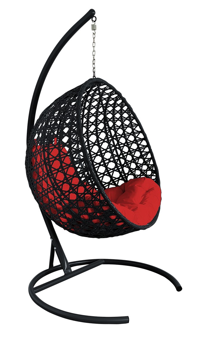 ПОДВЕСНОЕ КРЕСЛО КОКОН"КРУГЛЫЙ"ЛЮКС РОТАНГ ЦВЕТ: ЧЕРНЫЙ ; ПОДУШКА: КРАСНЫЙ Чёрный/красный