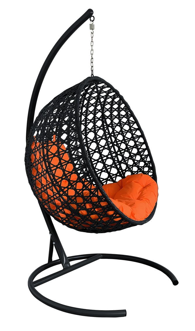 ПОДВЕСНОЕ КРЕСЛО КОКОН"КРУГЛЫЙ"ЛЮКС РОТАНГ ЦВЕТ: ЧЕРНЫЙ ; ПОДУШКА: ОРАНЖЕВЫЙ Чёрный/оранжевый