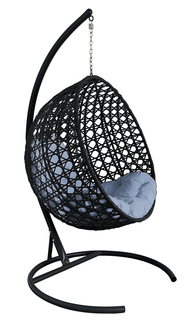 ПОДВЕСНОЕ КРЕСЛО КОКОН"КРУГЛЫЙ"ЛЮКС РОТАНГ ЦВЕТ: ЧЕРНЫЙ ; ПОДУШКА: СЕРЫЙ Чёрный/Серый
