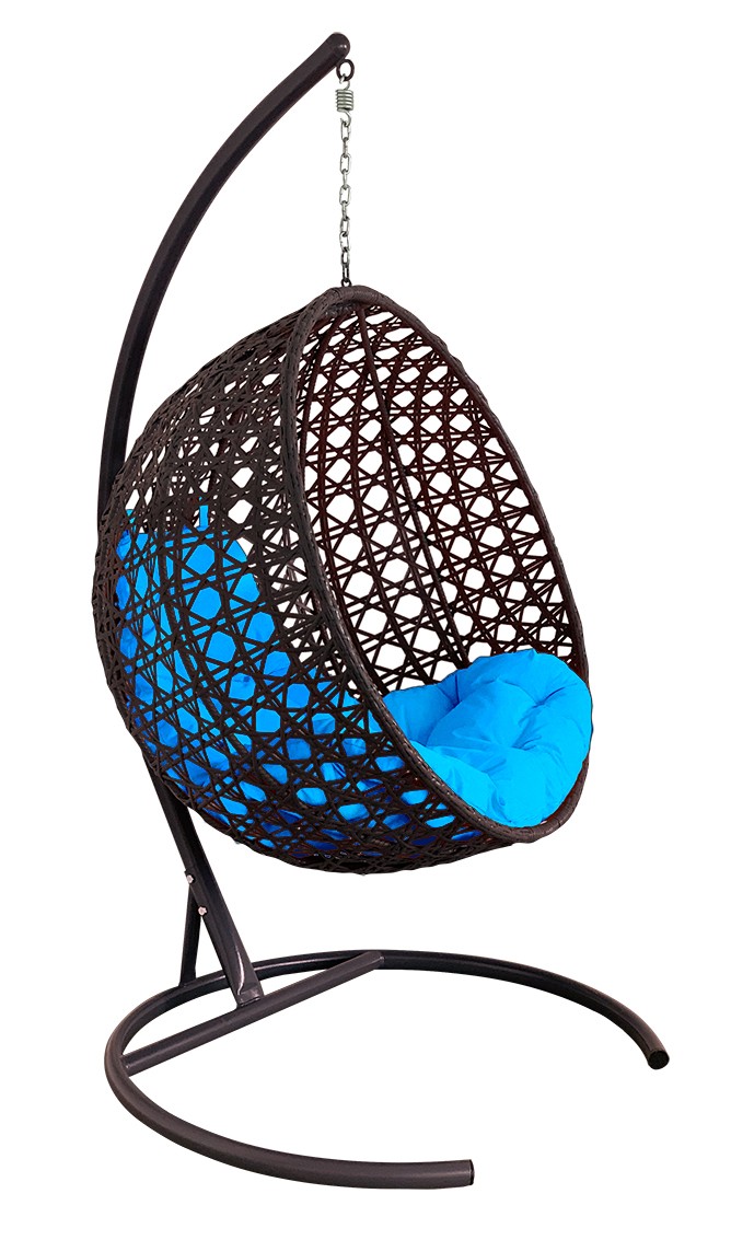 ПОДВЕСНОЕ КРЕСЛО КОКОН"КРУГЛЫЙ"ЛЮКС РОТАНГ ЦВЕТ: КОРИЧНЕВЫЙ ; ПОДУШКА: ГОЛУБОЙ Коричневый/голубой