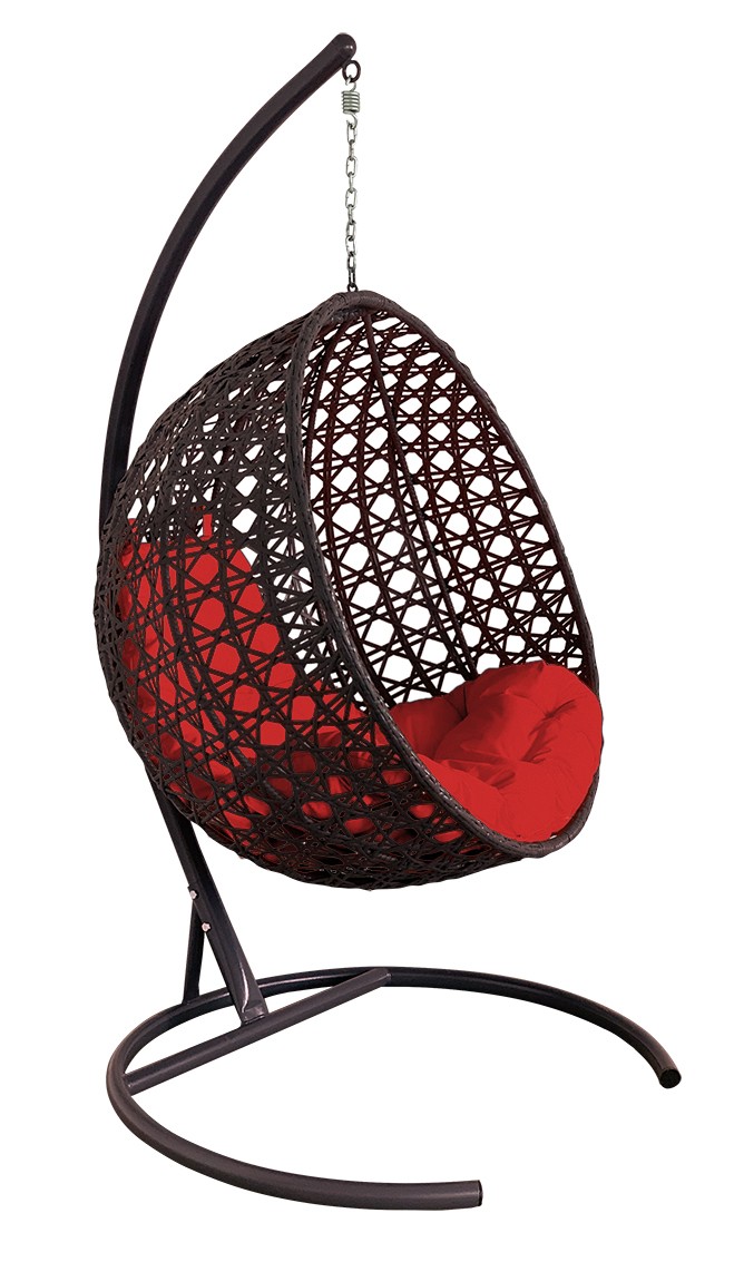 ПОДВЕСНОЕ КРЕСЛО КОКОН"КРУГЛЫЙ"ЛЮКС РОТАНГ ЦВЕТ: КОРИЧНЕВЫЙ ; ПОДУШКА: КРАСНЫЙ Коричневый/Красный