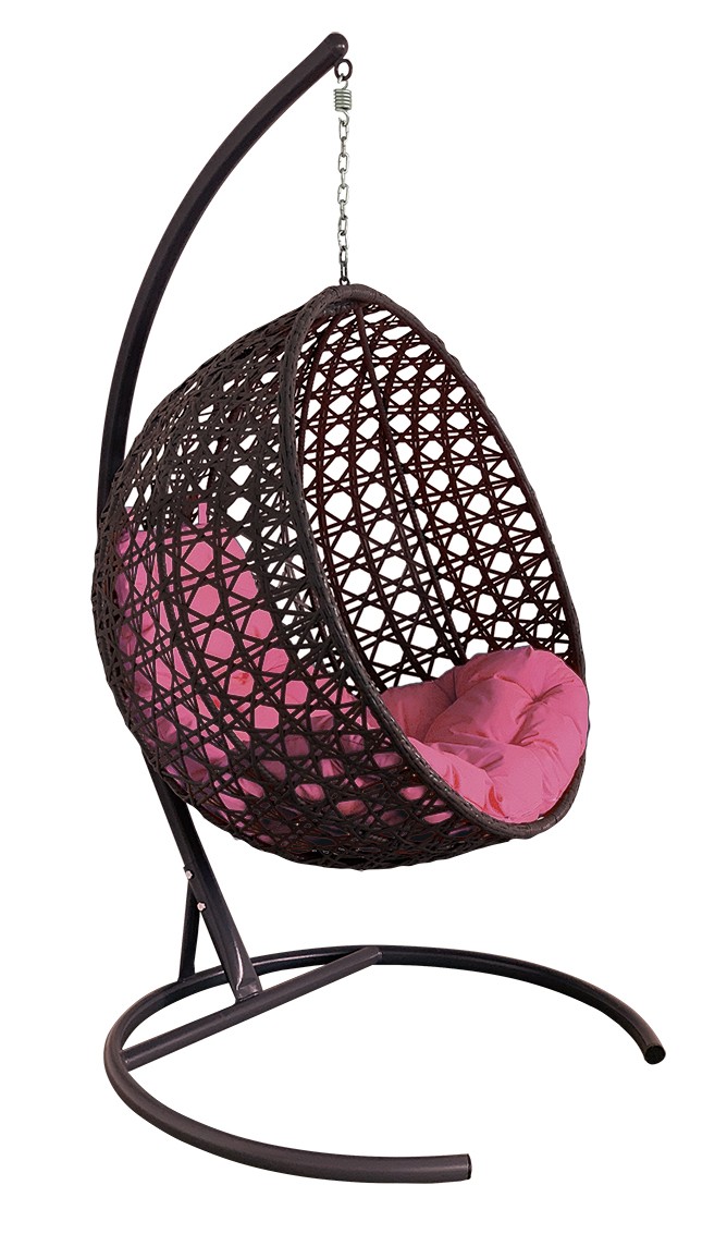 ПОДВЕСНОЕ КРЕСЛО КОКОН"КРУГЛЫЙ"ЛЮКС РОТАНГ ЦВЕТ: КОРИЧНЕВЫЙ ; ПОДУШКА: РОЗОВЫЙ Коричнево/розовый
