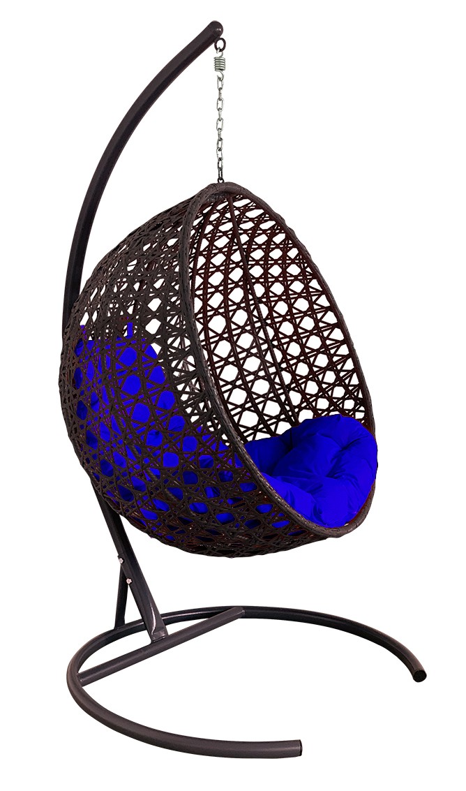ПОДВЕСНОЕ КРЕСЛО КОКОН"КРУГЛЫЙ"ЛЮКС РОТАНГ ЦВЕТ: КОРИЧНЕВЫЙ ; ПОДУШКА: СИНИЙ Коричневый/Синий