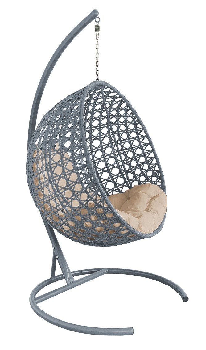 ПОДВЕСНОЕ КРЕСЛО КОКОН"КРУГЛЫЙ"ЛЮКС РОТАНГ ЦВЕТ: СЕРЫЙ ; ПОДУШКА: БЕЖЕВЫЙ серый/бежевый