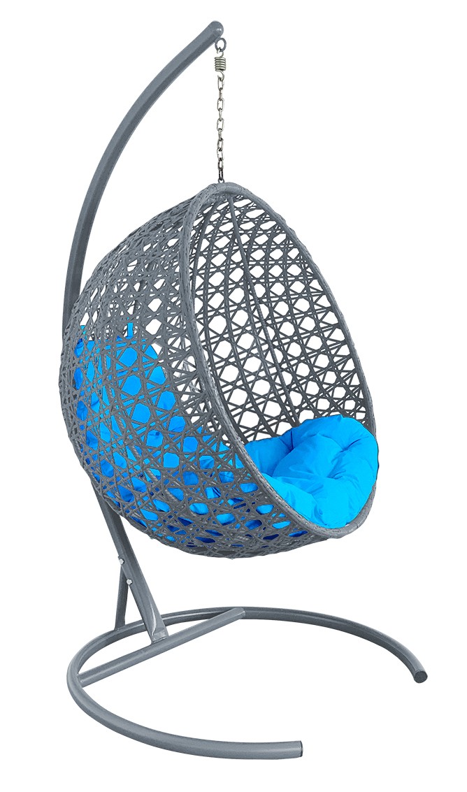 ПОДВЕСНОЕ КРЕСЛО КОКОН"КРУГЛЫЙ"ЛЮКС РОТАНГ ЦВЕТ: СЕРЫЙ ; ПОДУШКА: ГОЛУБОЙ Серый/голубой