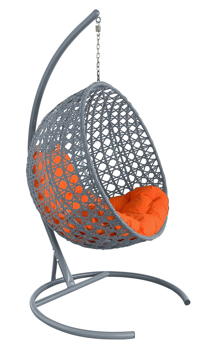 ПОДВЕСНОЕ КРЕСЛО КОКОН"КРУГЛЫЙ"ЛЮКС РОТАНГ ЦВЕТ: СЕРЫЙ ; ПОДУШКА: ОРАНЖЕВЫЙ серый/оранжевый
