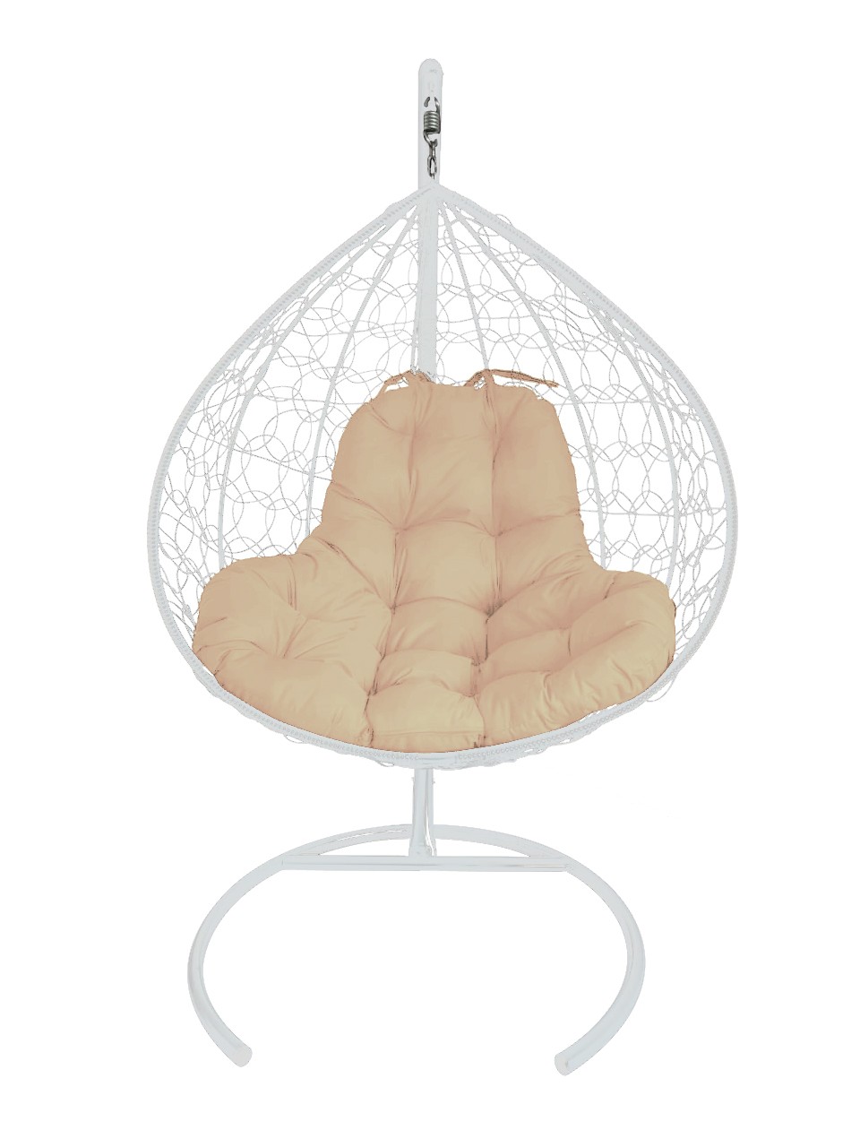 ПОДВЕСНОЕ КРЕСЛО КОКОН"XL" ЦВЕТ РОТАНГ: БЕЛЫЙ ; ПОДУШКА: БЕЖЕВЫЙ Белый/Бежевый