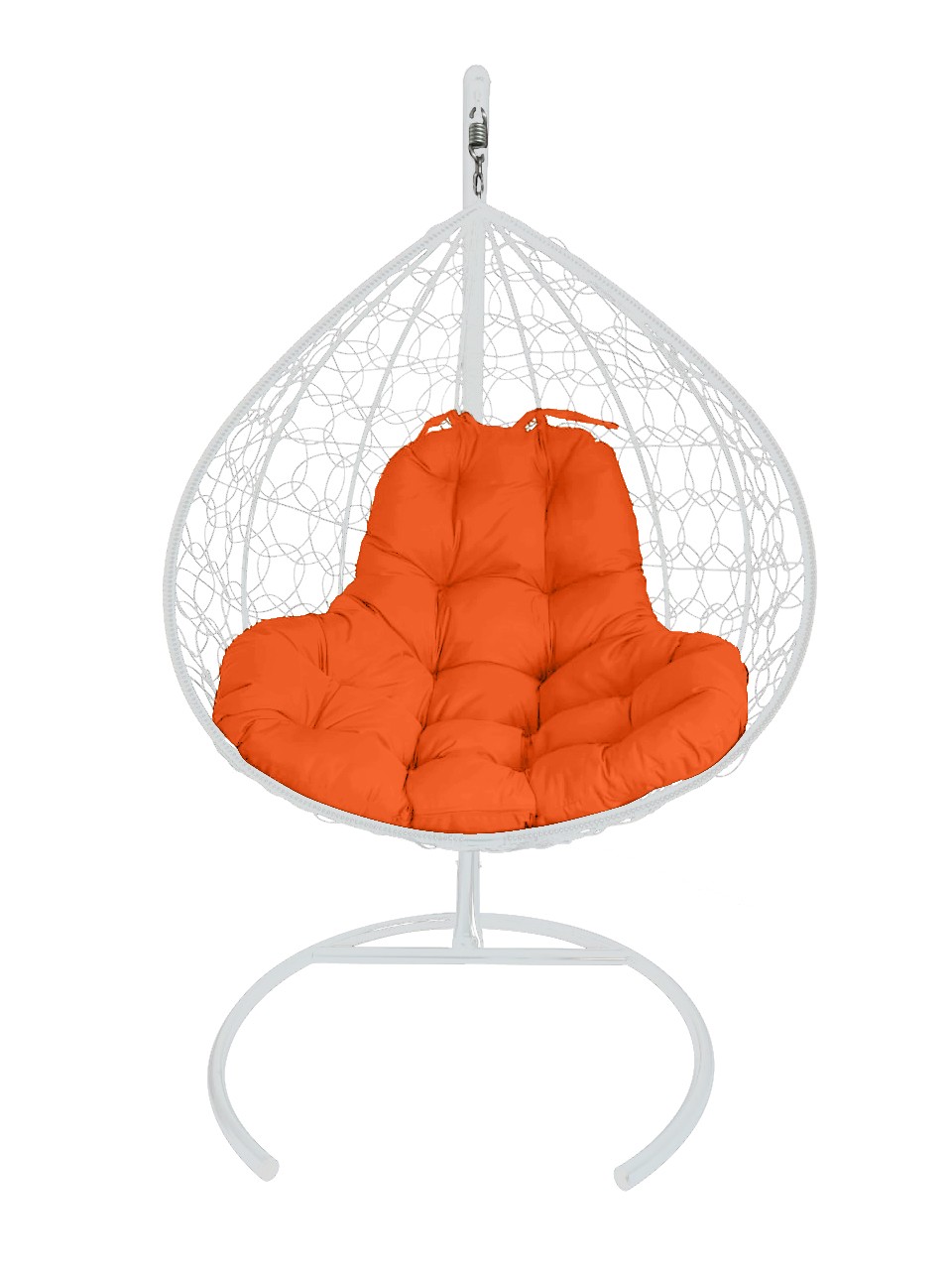 ПОДВЕСНОЕ КРЕСЛО КОКОН"XL" ЦВЕТ РОТАНГ: БЕЛЫЙ ; ПОДУШКА: ОРАНЖЕВЫЙ Белый/Оранжевый