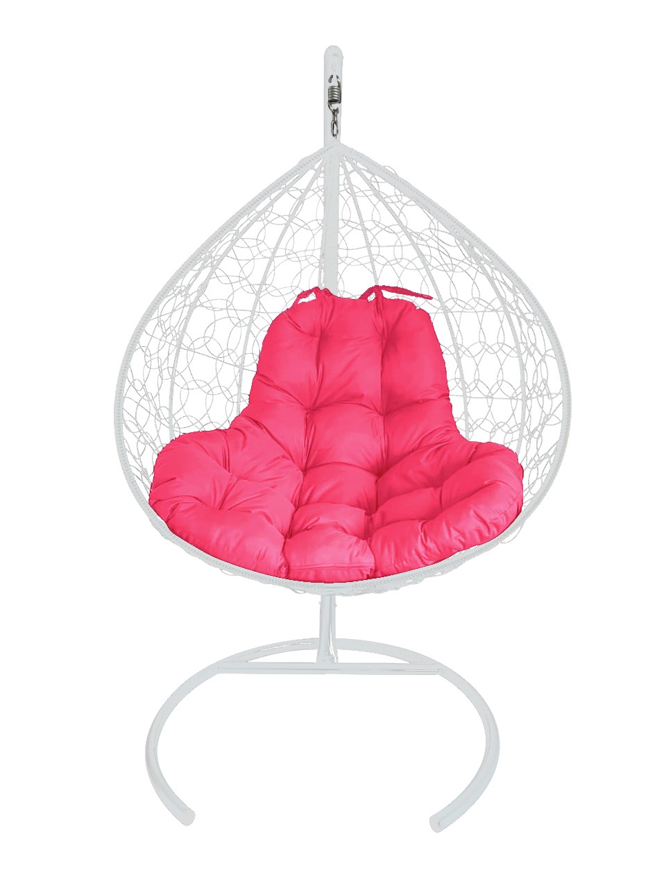 ПОДВЕСНОЕ КРЕСЛО КОКОН"XL" ЦВЕТ РОТАНГ: БЕЛЫЙ ; ПОДУШКА: РОЗОВЫЙ Белый/розовый