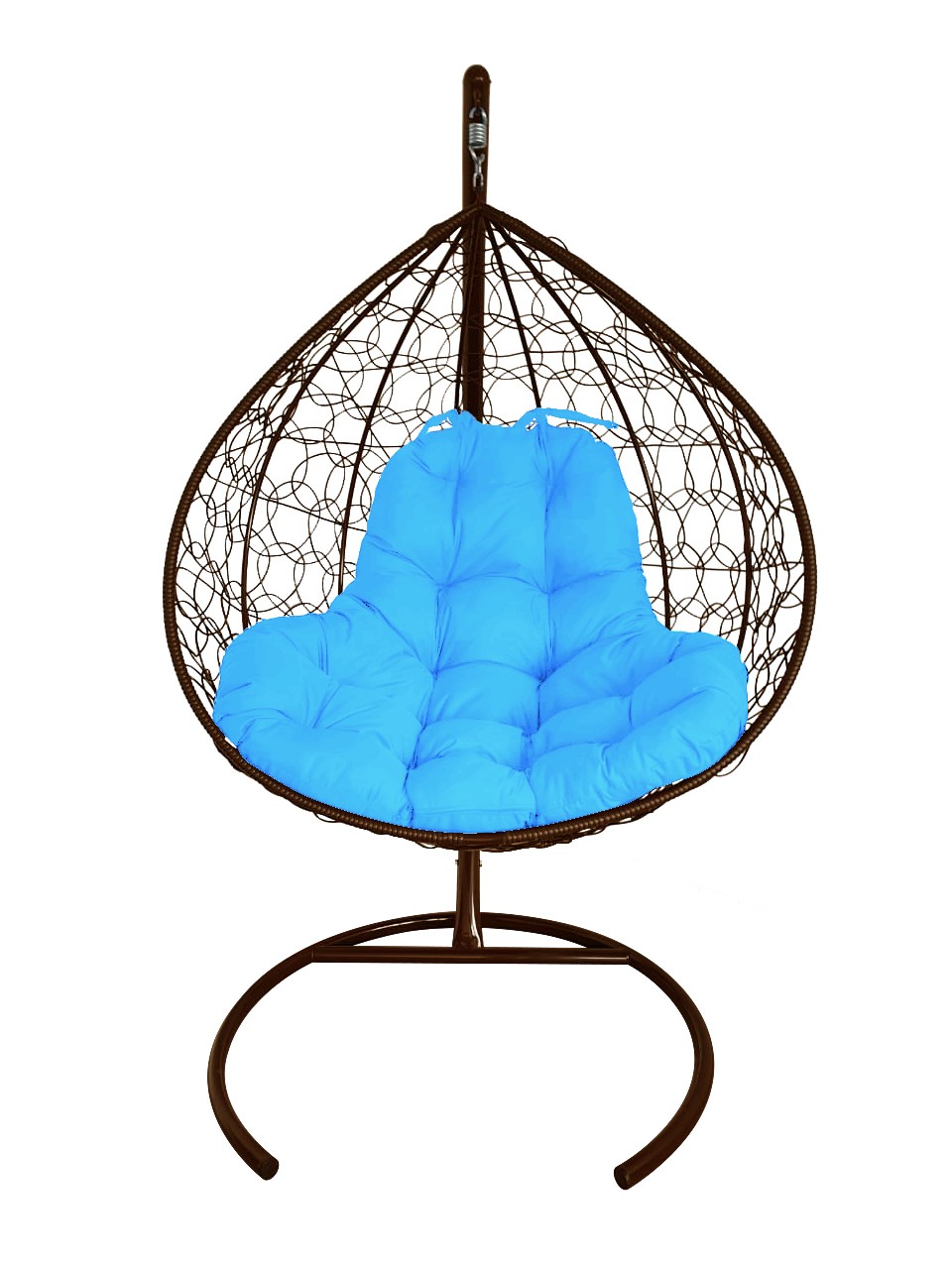 ПОДВЕСНОЕ КРЕСЛО КОКОН"XL" ЦВЕТ РОТАНГ: КОРИЧНЕВЫЙ ; ПОДУШКА: ГОЛУБОЙ Коричневый/голубой