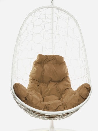 Подвесное кресло ОВАЛ с ротангом цвет ротанга: белый; цвет ткани: бежевый